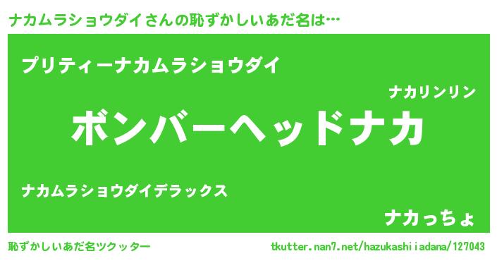| ヒーロー風カッコイイあだ名 | 『慈愛の使者ナカムラショウダイ』 |