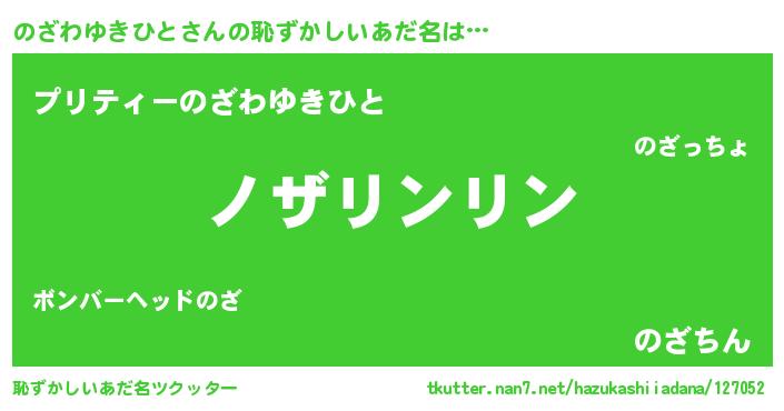 | ポケモン風あだ名 | 『ヒノザワユキヒト』『ノザキング』 |