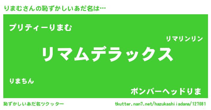 | ヒーロー風カッコイイあだ名 | 『ウルトラ戦士リマム』『仮面リマダー』 |