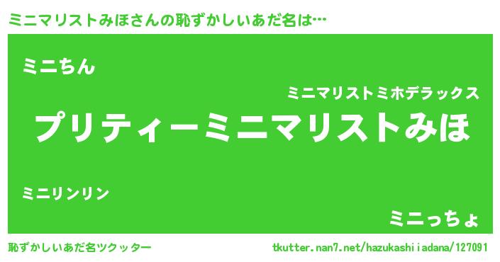 | ヘコむあだ名 | 『ミニにー』『ミニマリストみほ(遠い目)』 |