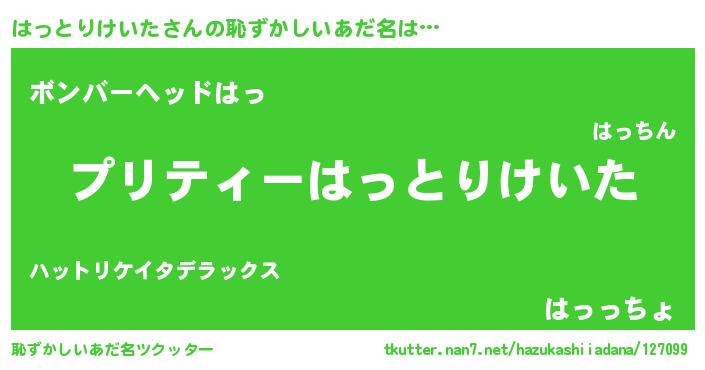 | 意味不明あだ名 | 『住所不定無職はっとりけいた(50歳)』 |
