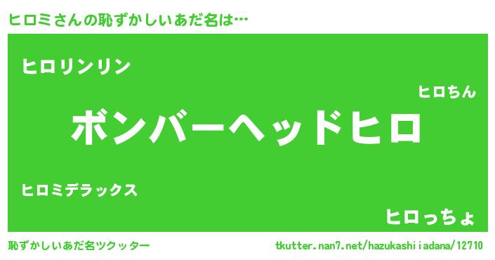| ヘコむあだ名 | 『ヒロっぺ』『つくし』『ヒロもー』 |