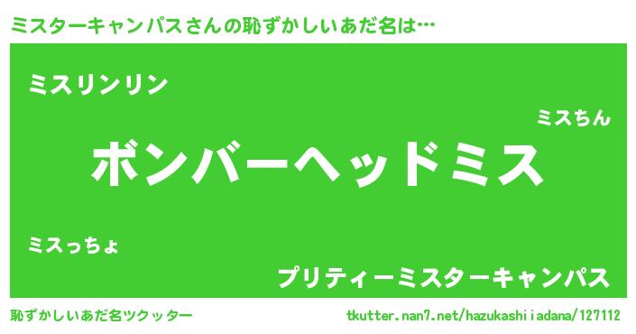 | 意味不明あだ名 | 『眠気覚ましガムミスターキャンパス味』 |