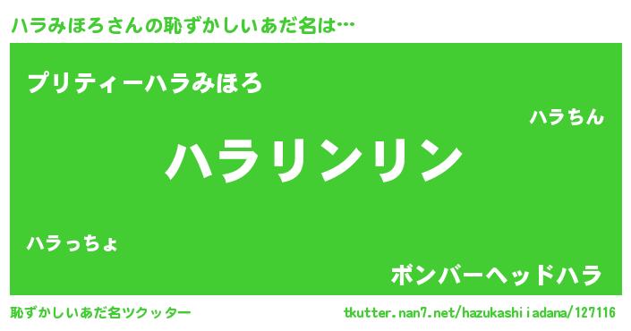 | 可愛いあだ名 | 『ハラぷりん』『ハっラぃー』 |