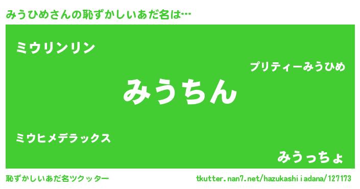 | 意味不明あだ名 | 『永久保存みうひめ』 |