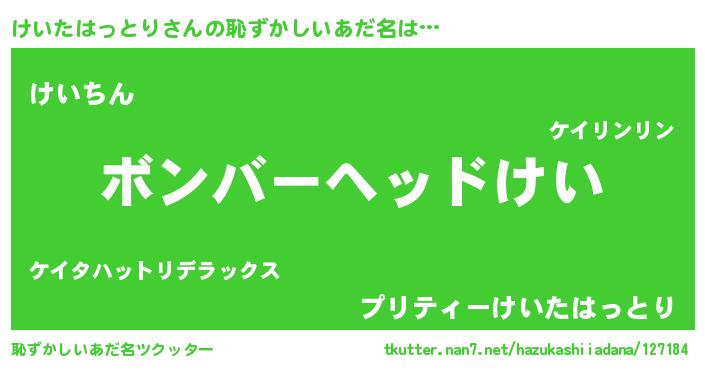 | ヘコむあだ名 | 『けいたはっとり(小並感)』『けいふぇ~』 |