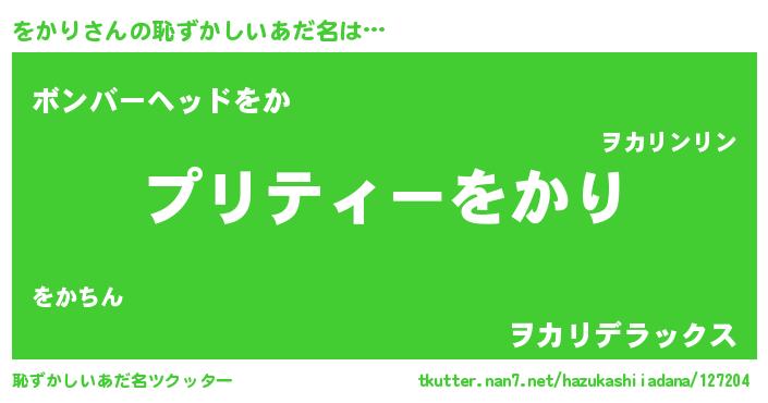 | 意味不明あだ名 | 『住所不定無職をかり(39歳)』『自称をかり』 |