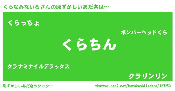 | ヘコむあだ名 | 『くらなみないる(小並感)』『レバニラ』 |
