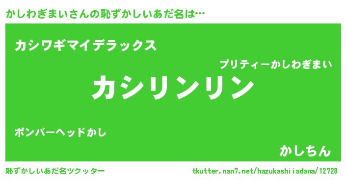 | ヘコむあだ名 | 『かしお』『かしわぎまい(小並感)』 |