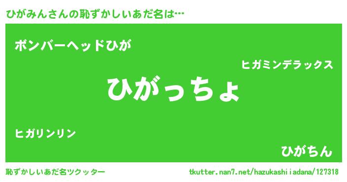 | ヒーロー風カッコイイあだ名 | 『仮面ヒガダー』『ウルトラひがみんマン』 |