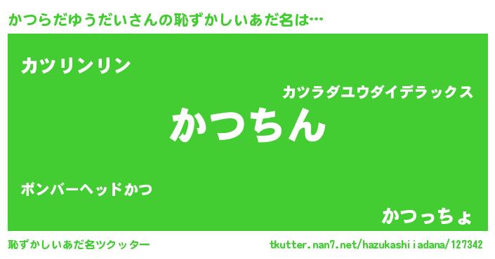 | ヘコむあだ名 | 『かつらだゆうだい(笑)』『かつっぺ』 |