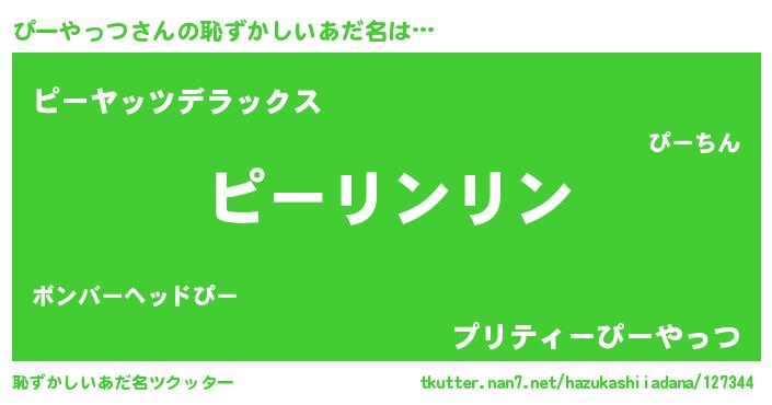 | 男性向けラノベタイトル風あだ名 | 『ダンジョンにぴーやっつを求めるのは間違っているだろうか』 |