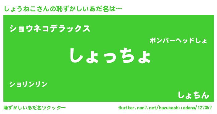 | ファンタジー風あだ名 | 『エターナルショウネコー』『ゼショトゥ』 |