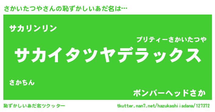 | ヒーロー風カッコイイあだ名 | 『仮面サカダー』『最強戦士サカイタツヤ』 |
