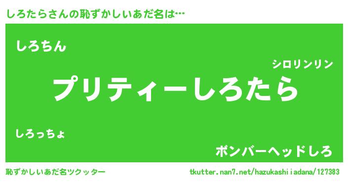 | 意味不明あだ名 | 『ペロリンしろたら』『永久保存しろたら』 |
