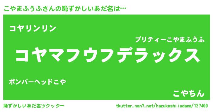 | ヘコむあだ名 | 『こや太郎』『こやまふうふ(爆)』 |