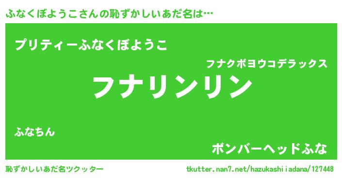 | 意味不明あだ名 | 『とにかく怪しいふなくぼようこ』 |