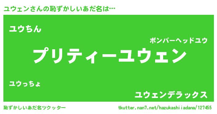 | ヒーロー風カッコイイあだ名 | 『仮面ユウダー』『スーパーユウェン』 |