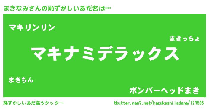 | 意味不明あだ名 | 『自称まきなみ』『たけのこ科まきなみ属』 |