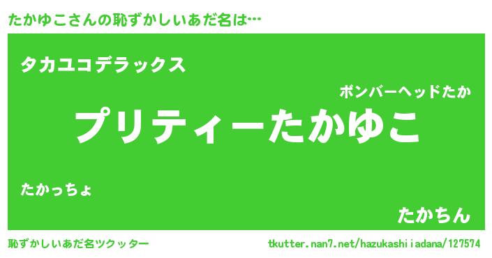 | ヘコむあだ名 | 『たかにー』『たかゆこ(苦笑)』 |