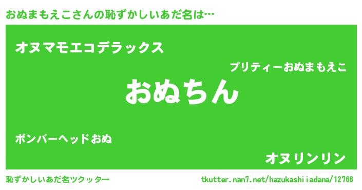 | 意味不明あだ名 | 『永久保存おぬまもえこ』 |