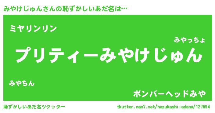 | ヒーロー風カッコイイあだ名 | 『スーパーミヤケジュン』『炎刃騎士ミヤ』 |