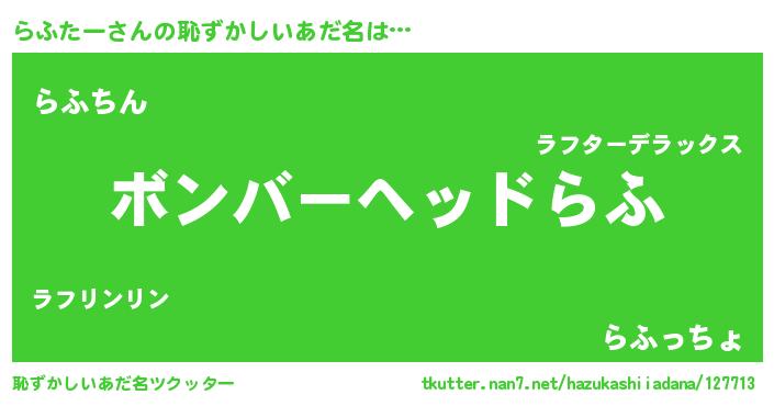 | ヒーロー風カッコイイあだ名 | 『慈愛の使者らふたー』『ネオラフター』 |