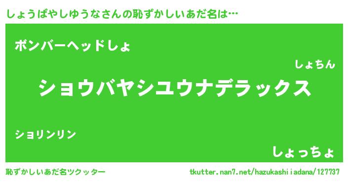 | 意味不明あだ名 | 『自称しょうばやしゆうな』 |