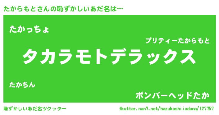 | 意味不明あだ名 | 『住所不定無職たからもと(81歳)』 |
