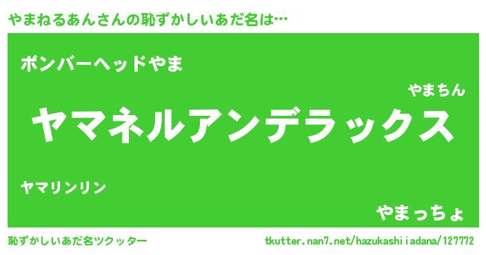 | ヘコむあだ名 | 『豆乳』『やまねるあん(笑)』 |