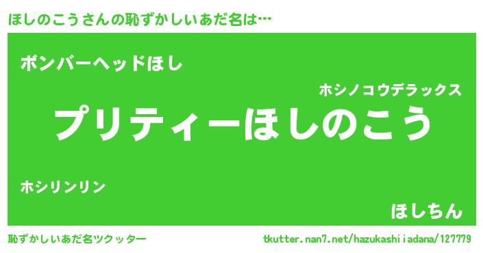 | ヘコむあだ名 | 『ほしっふぃ~』『ほしのこう(爆)』 |