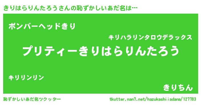 | ヘコむあだ名 | 『きりにゅー』『きりはらりんたろう(爆)』 |