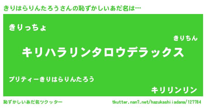 | 意味不明あだ名 | 『自称きりはらりんたろう』 |