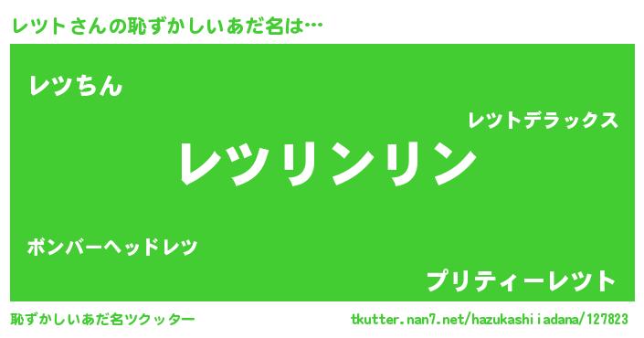 | 男性向けラノベタイトル風あだ名 | 『レツトの嫁は女の子じゃないと思った?』 |