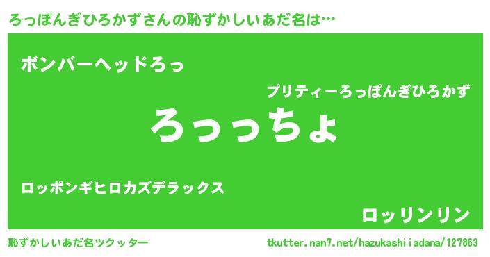 | 欧米人風あだ名 | 『ろっぽんぎひろかずクリステル』 |