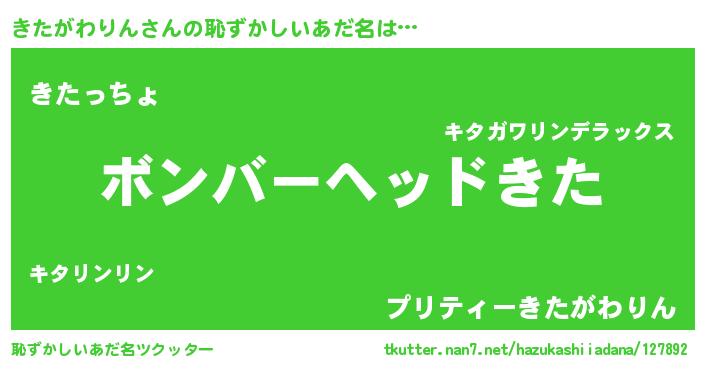 | 男性向けラノベタイトル風あだ名 | 『ノーゲーム・ノーキタガワリン』 |