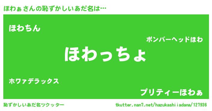 | 男性向けラノベタイトル風あだ名 | 『緋弾のホワァ』『はたらくほわぁさま!』 |