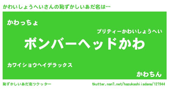 | ヘコむあだ名 | 『なまこ酢』『かわいしょうへい(笑)』 |