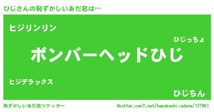 | 意味不明あだ名 | 『住所不定無職ひじ(59歳)』『永久保存ひじ』 |