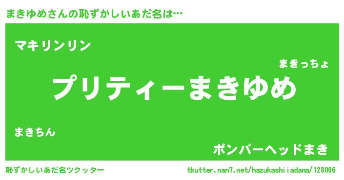 | ポケモン風あだ名 | 『マキチュウ』『ヒマキユメ』 |