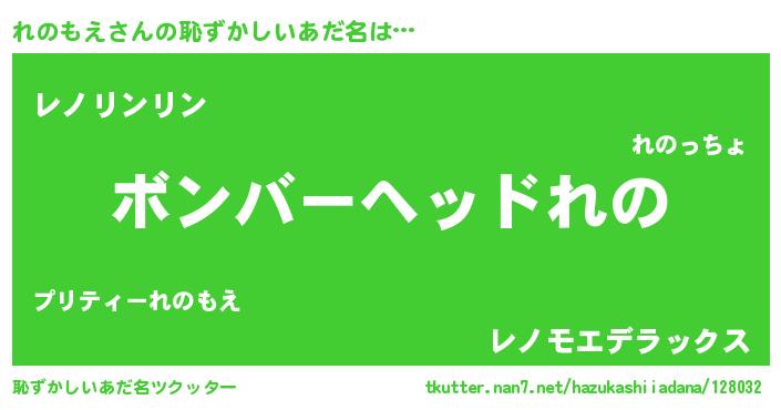 | 欧米人風あだ名 | 『ダニエルれのもえ』『ウサインれのもえ』 |