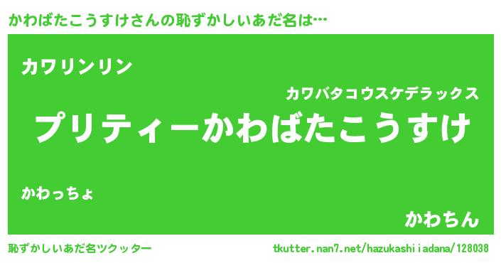 | ヒーロー風カッコイイあだ名 | 『スーパーカワバタコウスケ』 |