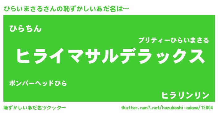 | ヘコむあだ名 | 『ひらいまさる(小並感)』『ひらぷりん』 |