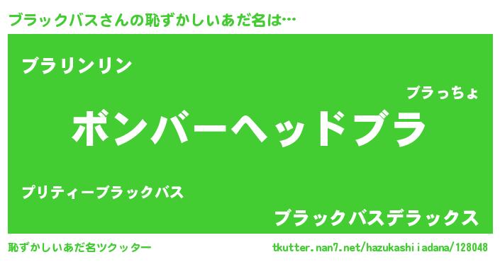 | ヒーロー風カッコイイあだ名 | 『慈愛の使者ブラックバス』 |