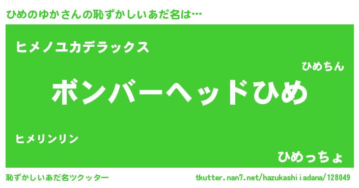 | ヒーロー風カッコイイあだ名 | 『慈愛の使者ひめのゆか』『炎刃騎士ヒメ』 |