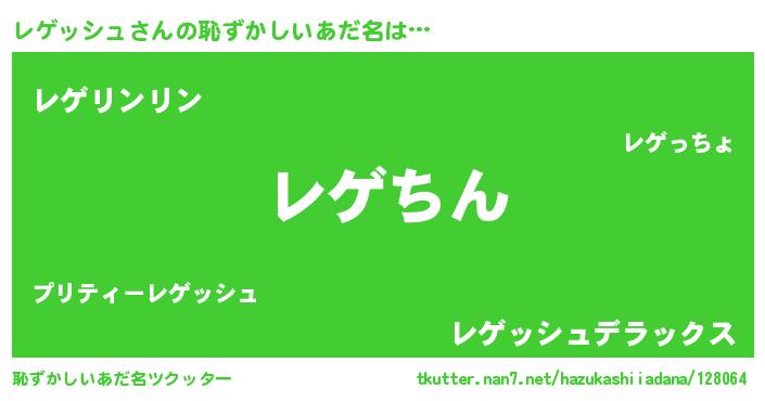 | ヘコむあだ名 | 『レゲッシュ(小並感)』『レゲっぺ』 |