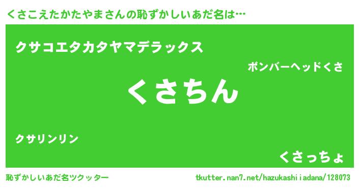 | 意味不明あだ名 | 『永久保存くさこえたかたやま』 |