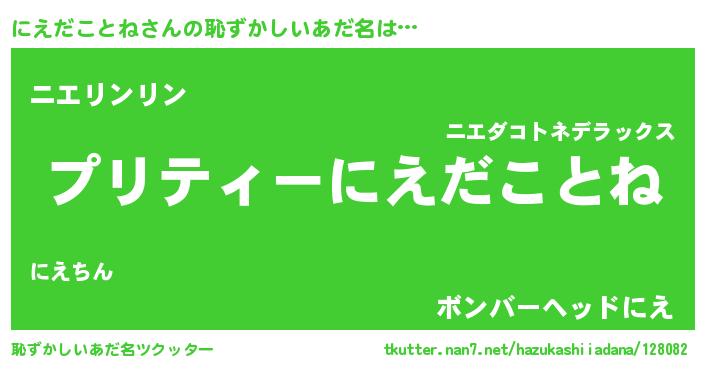 | 肩書あだ名 | 『にえだことね少佐』『にえだことねCEO』 |