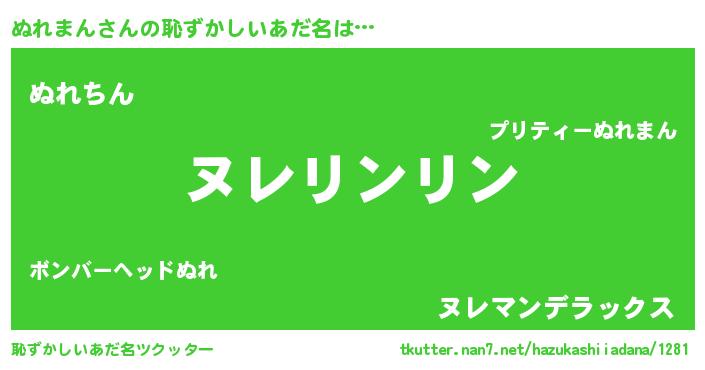 | 男性向けラノベタイトル風あだ名 | 『この素晴らしい世界にぬれまんを!』 |