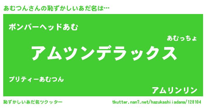 | 意味不明あだ名 | 『住所不定無職あむつん(6歳)』 |